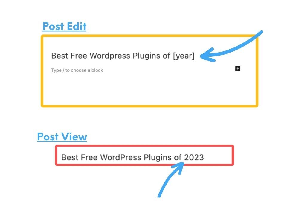 The Year In Title Wordpress Plugin is a lightweight tool to put the dynamic year in the title of a post by using the [year] shortcode. Each year, the title will automatically be updated to the correct year. Saving you having to find and replace or edit existing posts.
